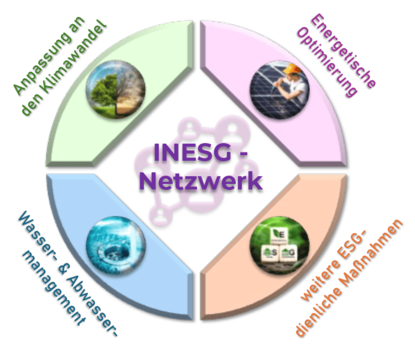 INESG vereint mittelständische Unternehmen, die innovative und anwendungsorientierte technische Lösungen in den Bereichen Gebäude-/Energietechnik, Wasser- & Abwassermanagement und Anpassung an Klimawandelherausforderungen selbst entwickeln & innerhalb gewerblicher Immobilien implementieren. Diese neuartigen technischen ESG-Lösungen bieten den Anwendern ökonomische & ökologische Vorteile und erfüllen zum Teil bereits gesetzlichen Anforderungen von Übermorgen.